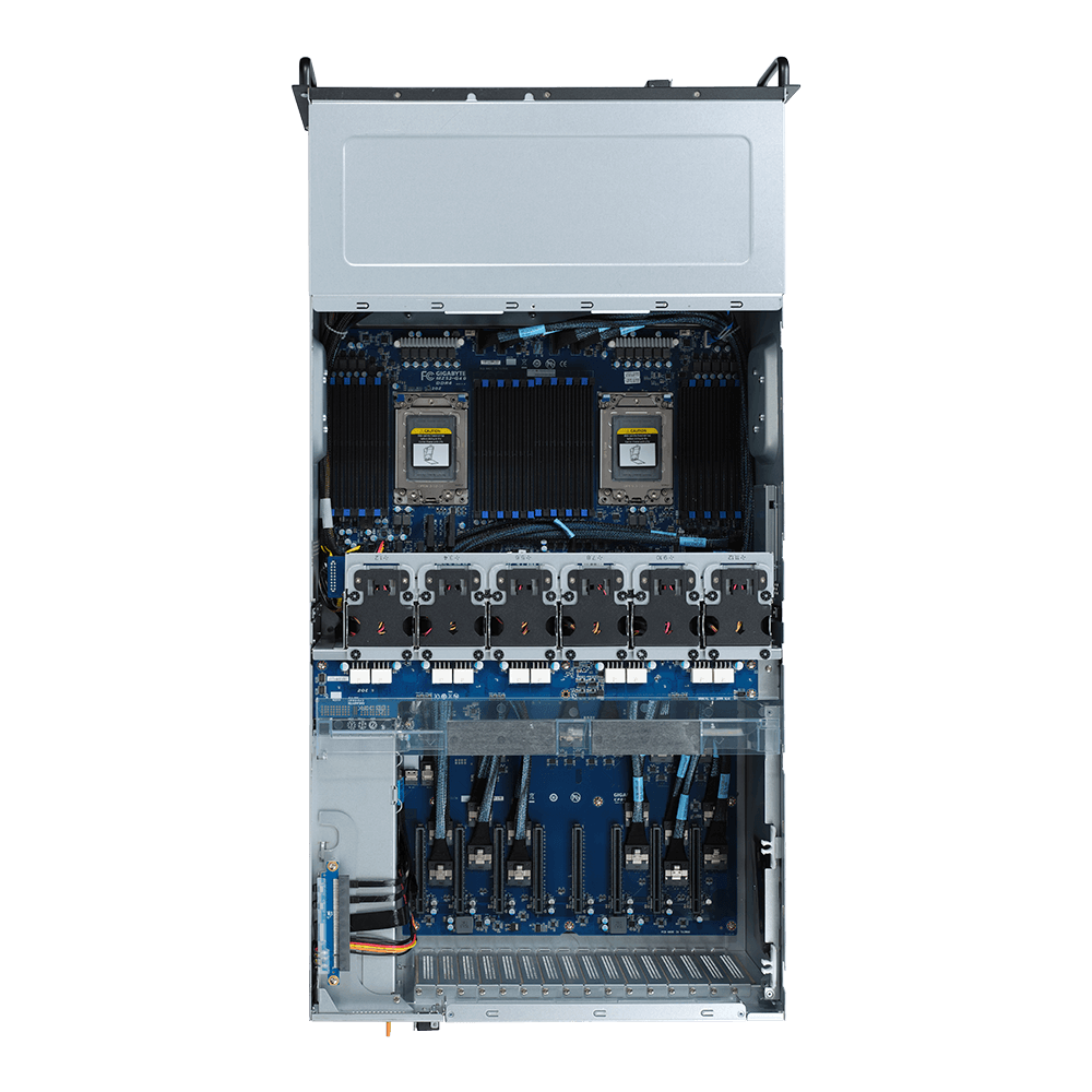 The G482-Z52 is one of the world’s first PCIe Gen 4.0 GPU server systems to be released to the market, featuring support for up to eight dual-width PCIe Gen 4.0 GPU cards (with each GPU connected directly to the processor via PCIe root). It is ideal to integrate an “AMD on AMD” solution using 2nd Gen EPYC processors together with the Radeon Instinct MI50, the world’s first 7nm, PCIe Gen 4.0 data center GPU, or with other Gen 3.0 or Gen 4.0 GPU cards for applications such as deep learning, cloud gaming or video streaming.