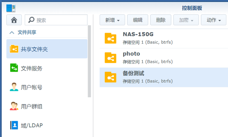 1、在共享文件夾中新增一個共享文件夾:備份測試;