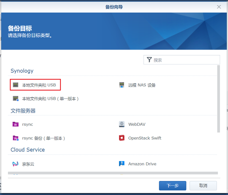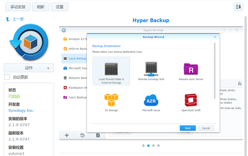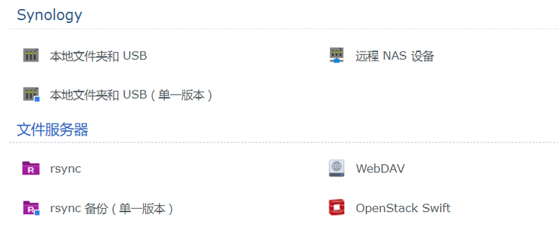 備份目的地可以是本地共享文件夾、外部設(shè)備、另一個(gè) Synology NAS、rsync 服務(wù)器,或者公共云服務(wù),如 Google Drive、Amazon Drive、Dropbox、Microsoft Azure、S3 兼容存儲(chǔ)以及專屬 Synology 用戶使用的云備份服務(wù) Synology C2。