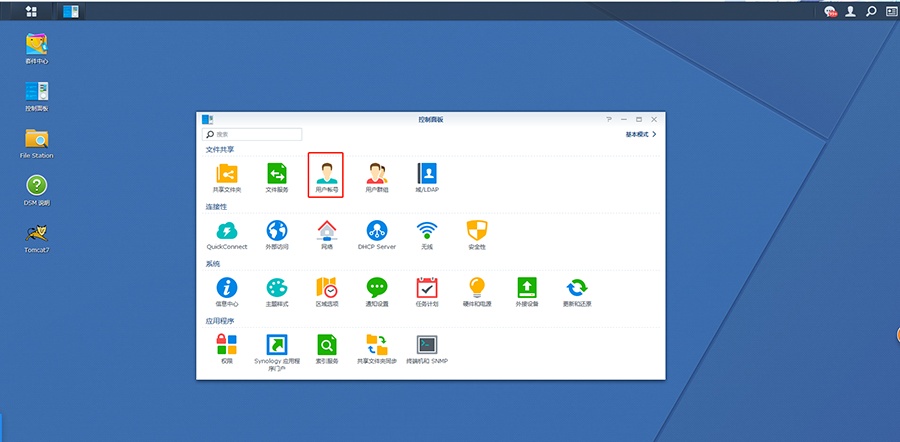 首先我們在群暉 nas 的 DSM 系統(tǒng)中進入控制面板,選擇用戶賬戶