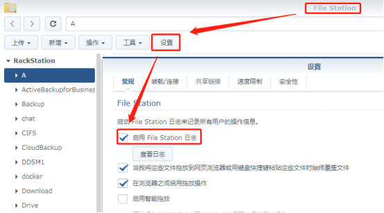 前提要打開fileStation設(shè)置的里的日志功能