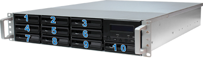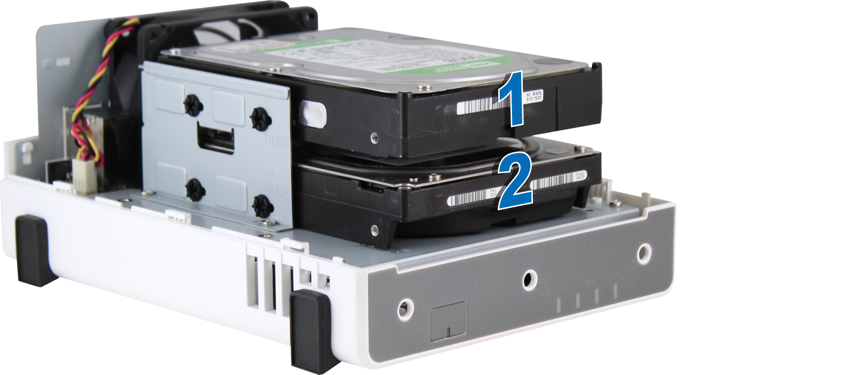針對 2 顆或以上硬盤機種的 Synology NAS,硬盤位置的排序由左至右,或是由上至下。 要找到實際相應硬盤,請參照下圖所示的編號。