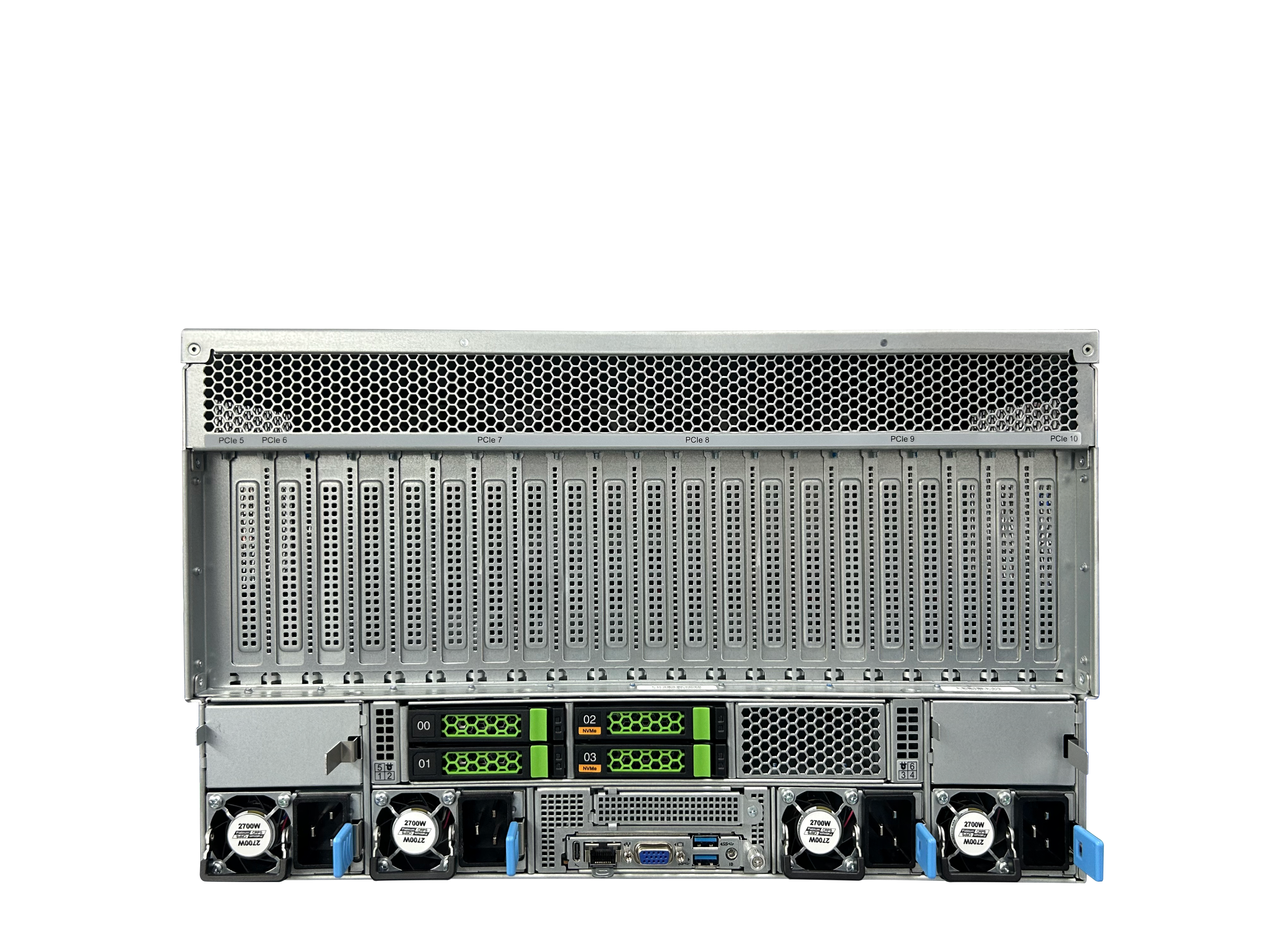 后置共4個組合Tri-ModeNVMe/SATA/SAS。9個PCIe5.0X16,2個PCle 5.0 x8 插槽以提供更高的帶寬和系統(tǒng)升級
