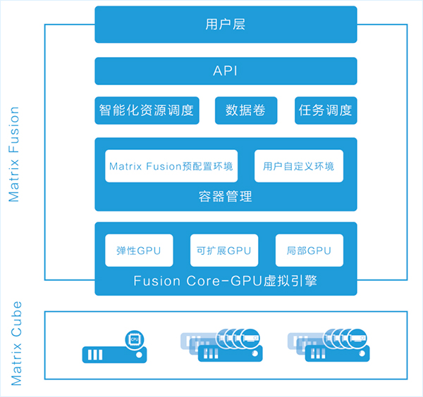 Matrix Fusion 支持各類硬件及操作系統(tǒng),提供端到端的基礎(chǔ)設(shè)施軟件解決方案,管理基礎(chǔ)CPU和GPU計(jì)算資源,能夠自動(dòng)進(jìn)行工作負(fù)載資源調(diào)配。深度學(xué)習(xí)是同時(shí)利用CPU和GPU處理工作負(fù)載的典型應(yīng)用,Matrix Fusion通過(guò)整合用戶所有的硬件資源(集群亦或是單機(jī))成為CPU+GPU資源池,再將資源根據(jù)開發(fā)者需要重新分配CPU和GPU到開發(fā)者的虛擬環(huán)境下,管理員也可以將多余的計(jì)算資源靈活分配給其他用戶或更為嚴(yán)苛的工作負(fù)載。