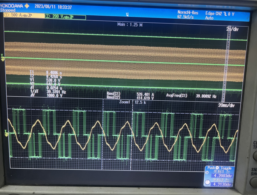 變頻器以39.3HZ(157rpm)運行時的電流電壓波形