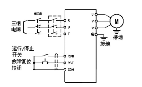 變頻器和電機之間存在一定距離,因此變頻器和電機都要做好接地的準(zhǔn)備。