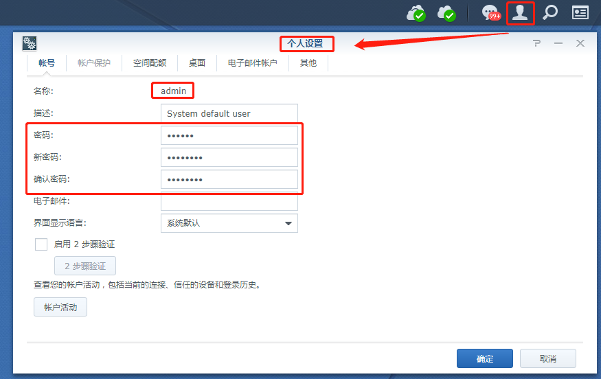 然后在個(gè)人設(shè)置這里才可以為admin設(shè)置其他密碼,默認(rèn)空密碼是不行的。